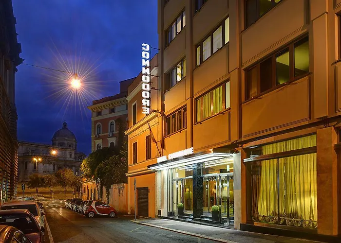 Κολοσσαίο είναι σε απόσταση μόνο 1 χλμ., ενώ Πάνθεον απέχει περίπου 2 χλμ. από το ξενοδοχείο. Το Commodore βρίσκεται κοντά σε φυσικά αξιοθέατα όπως Παλατινός Λόφος (2,1 χλμ. ) Και Orange Garden (2,2 χλμ. ). Βασιλική Αγίας Μαρίας των Αγγέλων και των χριστιανών μαρτύρων και Σάντα Πουντεντσιάνα απέχουν μόνο 5 λεπτά με τα πόδια από το κατάλυμα. Αυτό το μοντέρνο ξενοδοχείο βρίσκεται σε κοντινή απόσταση με τα πόδια από τον σταθμό του μετρό Rome Termini και μόνο 250 μέτρα από τον σιδηροδρομικό σταθμό Ρόμα Τερμίνι.